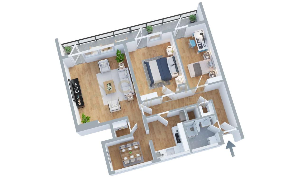 Bei Betreten der Wohnung kommen Sie in den hellen Verteilerflur, der Zutritt zu den beiden Schlafzimmern sowie zu Küche, Wohn- und Esszimmer als auch zum Duschbad bietet. Nach dem Eintritt in die Wohnung befindet sich links das lichtdurchflutete Badezimmer mit ebenerdiger Dusche und einem Fenster. Geradeaus folgend erwartet Sie das gemütliche Kinderzimmer/Büro mit eigenem Zugang zum Balkon. Darauffolgend ist das großzügige Elternschlafzimmer verortet, welches ebenfalls über einen eigenen Zugang zum Balkon verfügt. Gegenüber von dem Kinderzimmer befindet sich eine praktische Abstellkammer. Dem Verteilerflur folgend befindet sich auf der linken Seite die helle Einbauküche mit Elektrogeräten und Zutritt zu Ess- und Wohnzimmer. Aus der Küche können Sie direkt in das einzelne Esszimmer treten. Bei Bedarf lässt sich dieses Zimmer durch eine Trennwand zu einem einzelnen Zimmer umbauen. Von hier, wie vom Flur aus, haben Sie einen Durchgang in das großzügige und lichtdurchflutete Wohnzimmer. Dieses bietet, wie die beiden Schlafzimmer, ebenfalls einen Zugang zum Balkon. Ergänzend zu der Ausgestaltung befindet sich zwischen Ess- und Wohnzimmer eine weitere Abstellkammer.